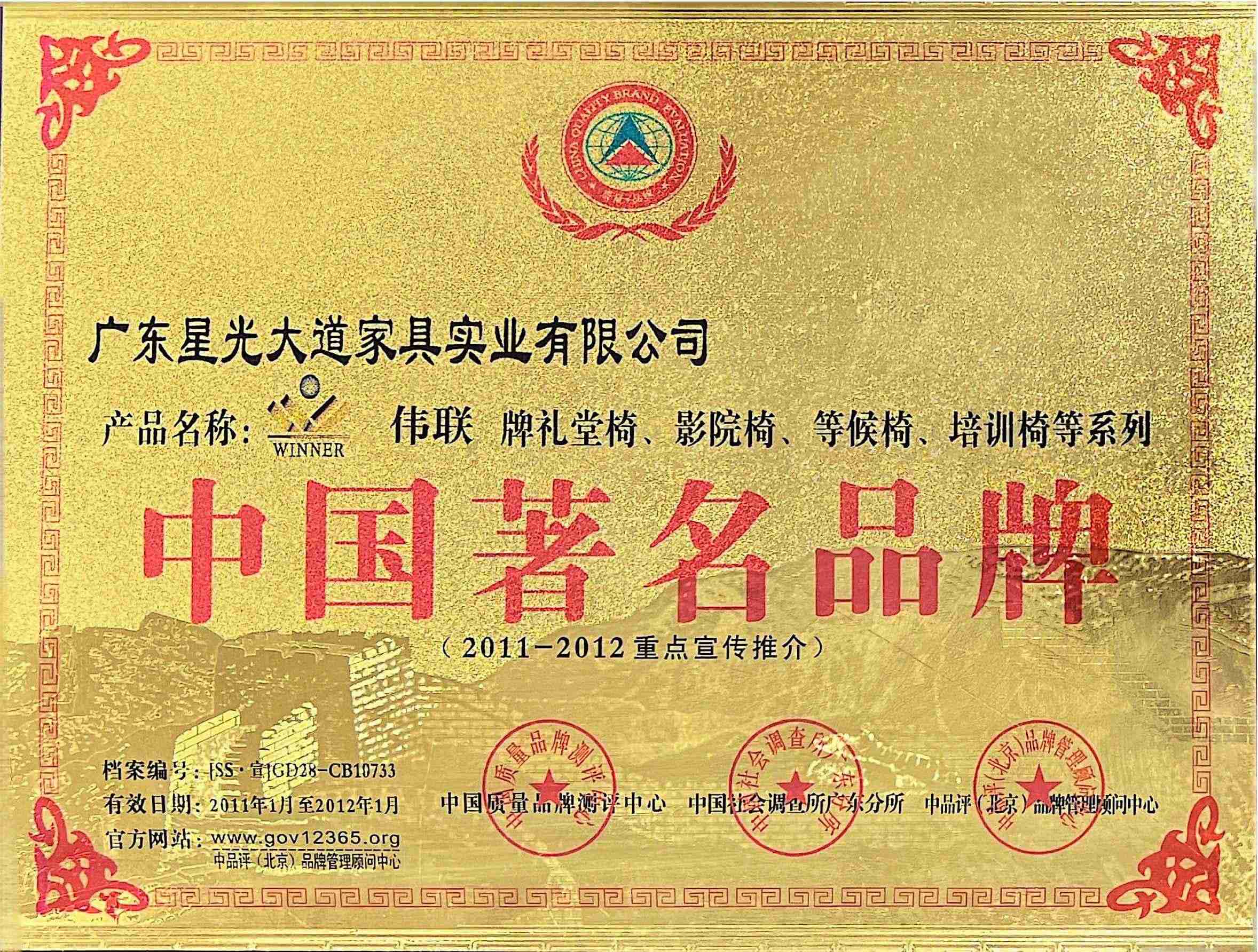 In 2011-2012, it was awarded the titles of "China's Famous Furniture Brand", "Guangdong Province's Famous and Quality Product", and "The Most Trusted Quality Assurance Brand by Consumers".