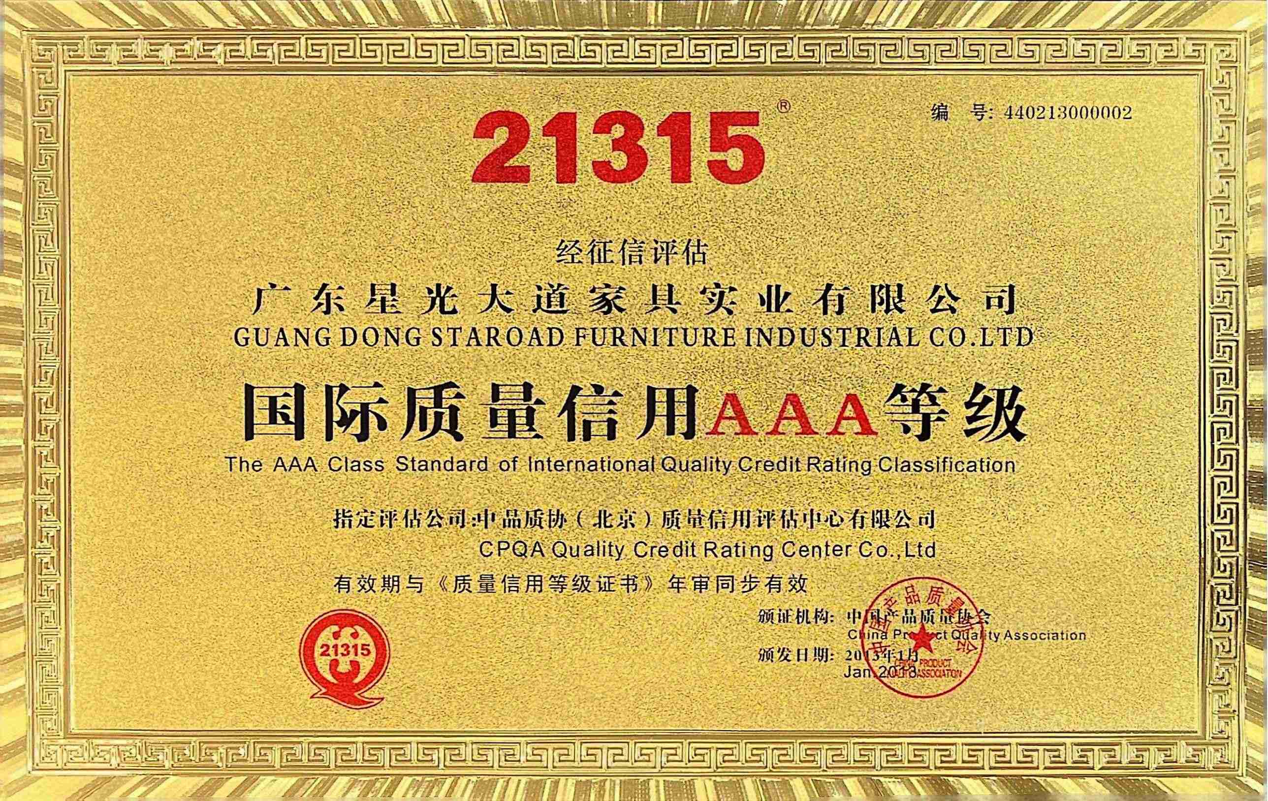 From 2013 to 2014, it was awarded the title of "International Quality Credit AAA Grade".