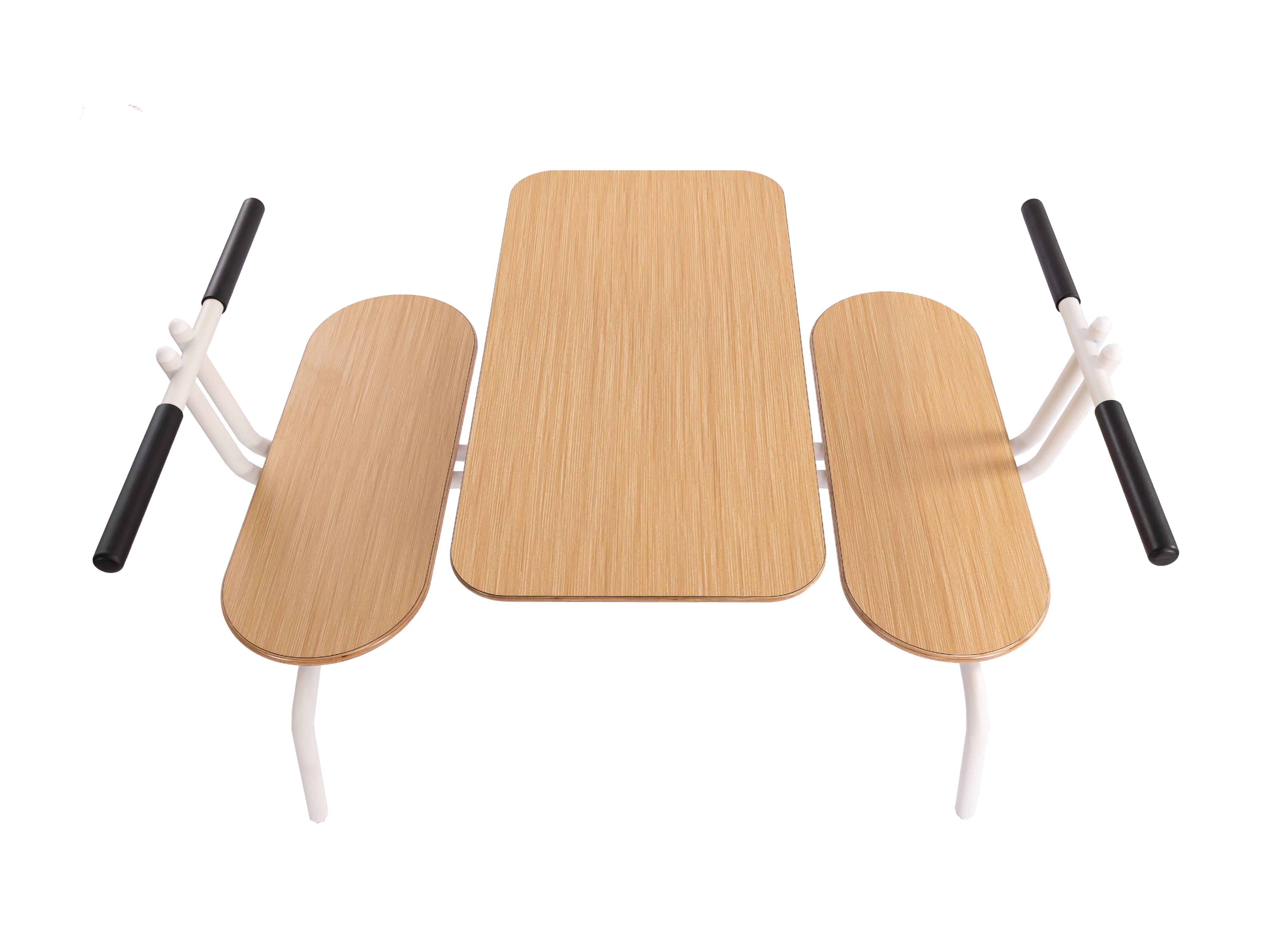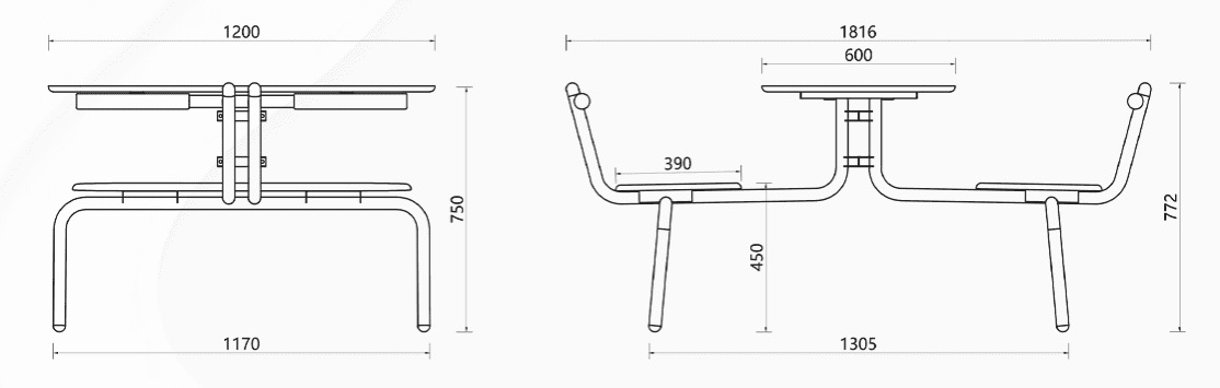 1. Tabletop & Seat: Constructed with multi-layer solid wood board substrate, surfaced with wear-resistant fireproof laminate, and finished with a waterproof paint safe-edge design.