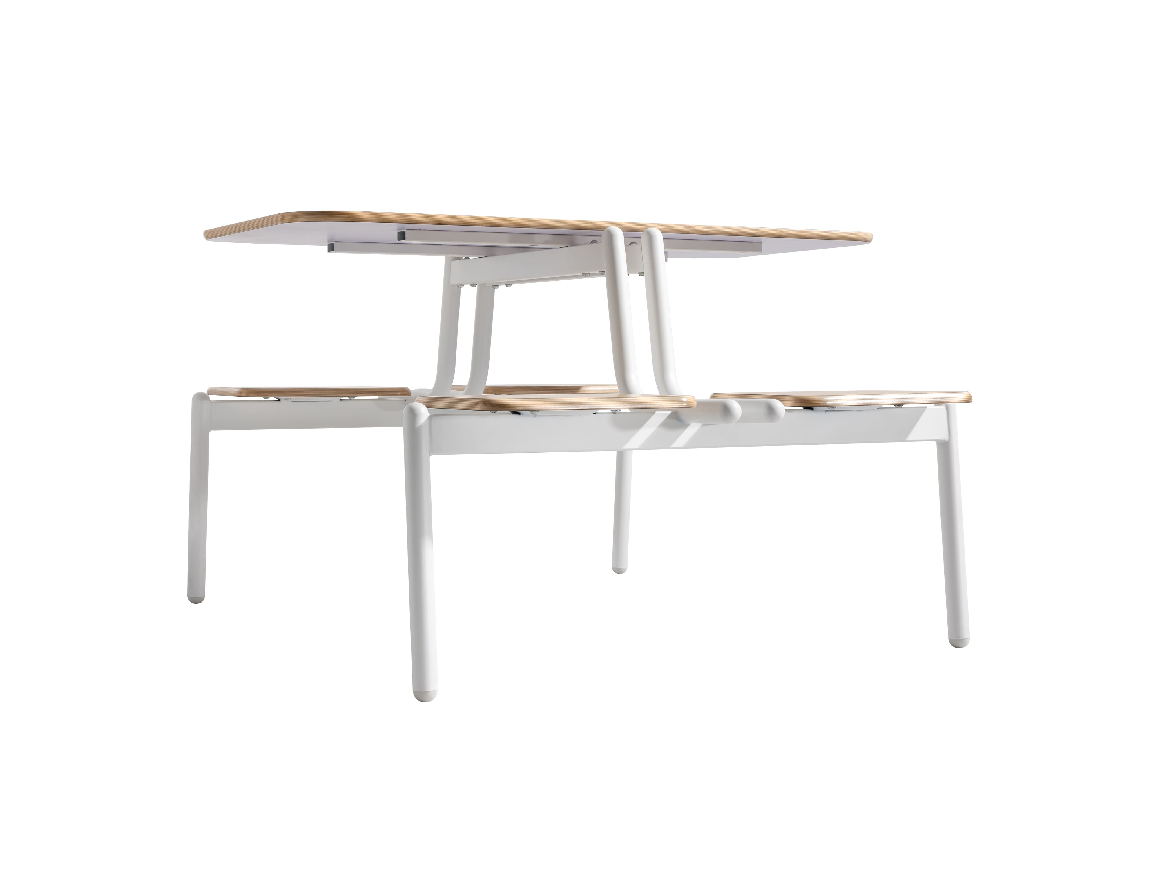1. Tabletop & Seat: Constructed with multi-layer solid wood board substrate, surfaced with wear-resistant fireproof laminate, and finished with a waterproof paint safe-edge design.