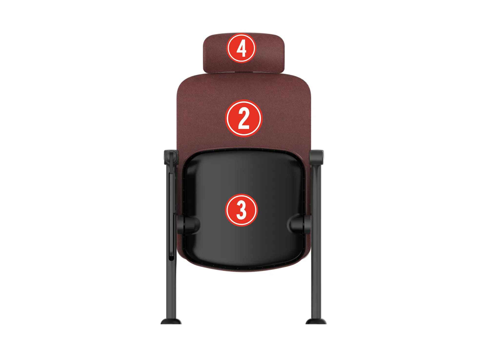 ② & ③ Seat and backrest sponge: High-density PU, formed through cold foaming and molding.