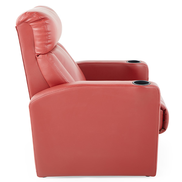 ①Handrail:Made from carefully selected eco-friendly solid wood through a shaping process. The cup holder can be equipped with a slot for placing a mobile phone and a middle tube for popcorn. The cup holder is made of ABS New material injection molding, with the option to install luminous number plates.