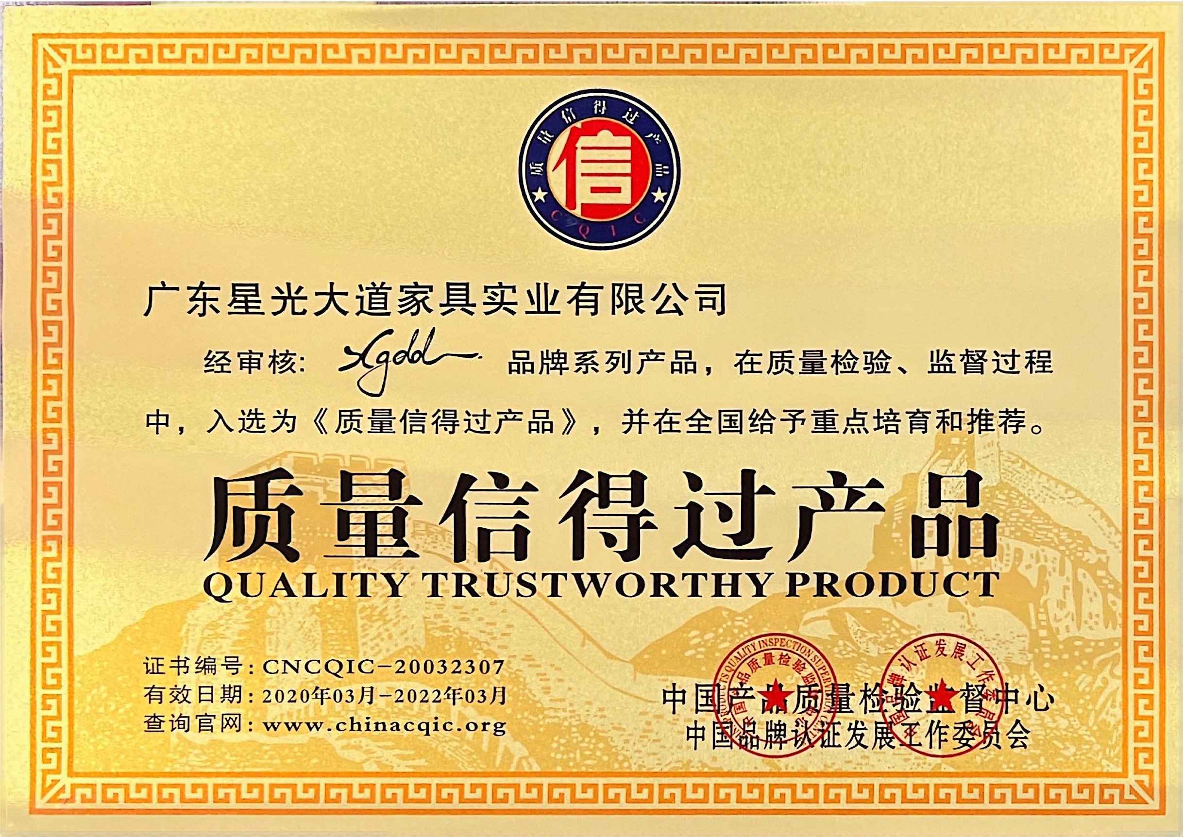 In 2011-2012, it was awarded the titles of "China's Famous Furniture Brand", "Guangdong Province's Famous and Quality Product", and "The Most Trusted Quality Assurance Brand by Consumers".