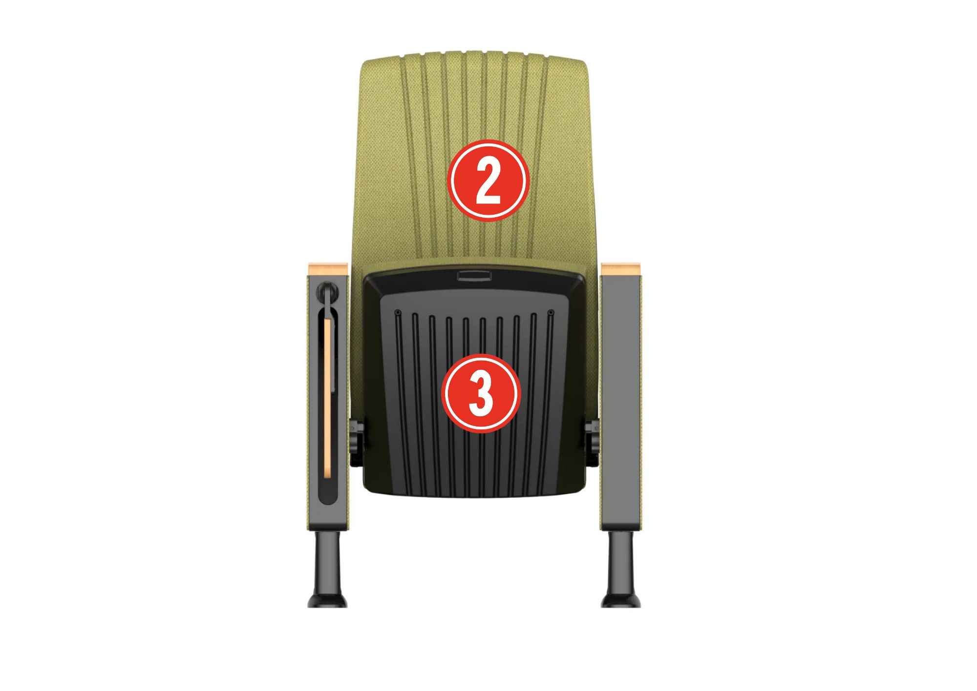 ② & ③ Seat and backrest sponge: High-density PU, formed through cold foaming molding.