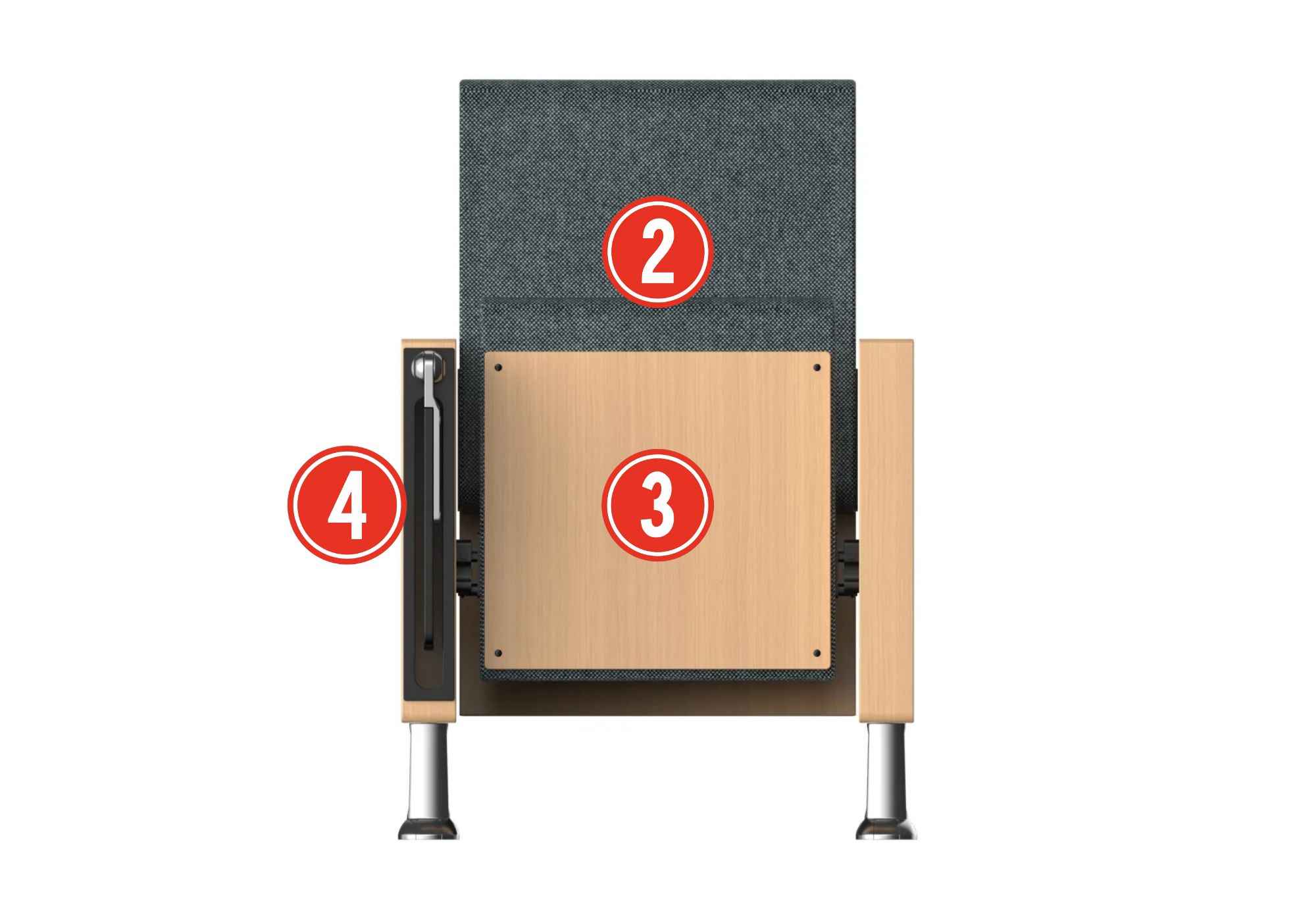 ① Armrest cover: Made of solid wood and coated with eco-friendly polyurethane paint through mold numerical control forming.