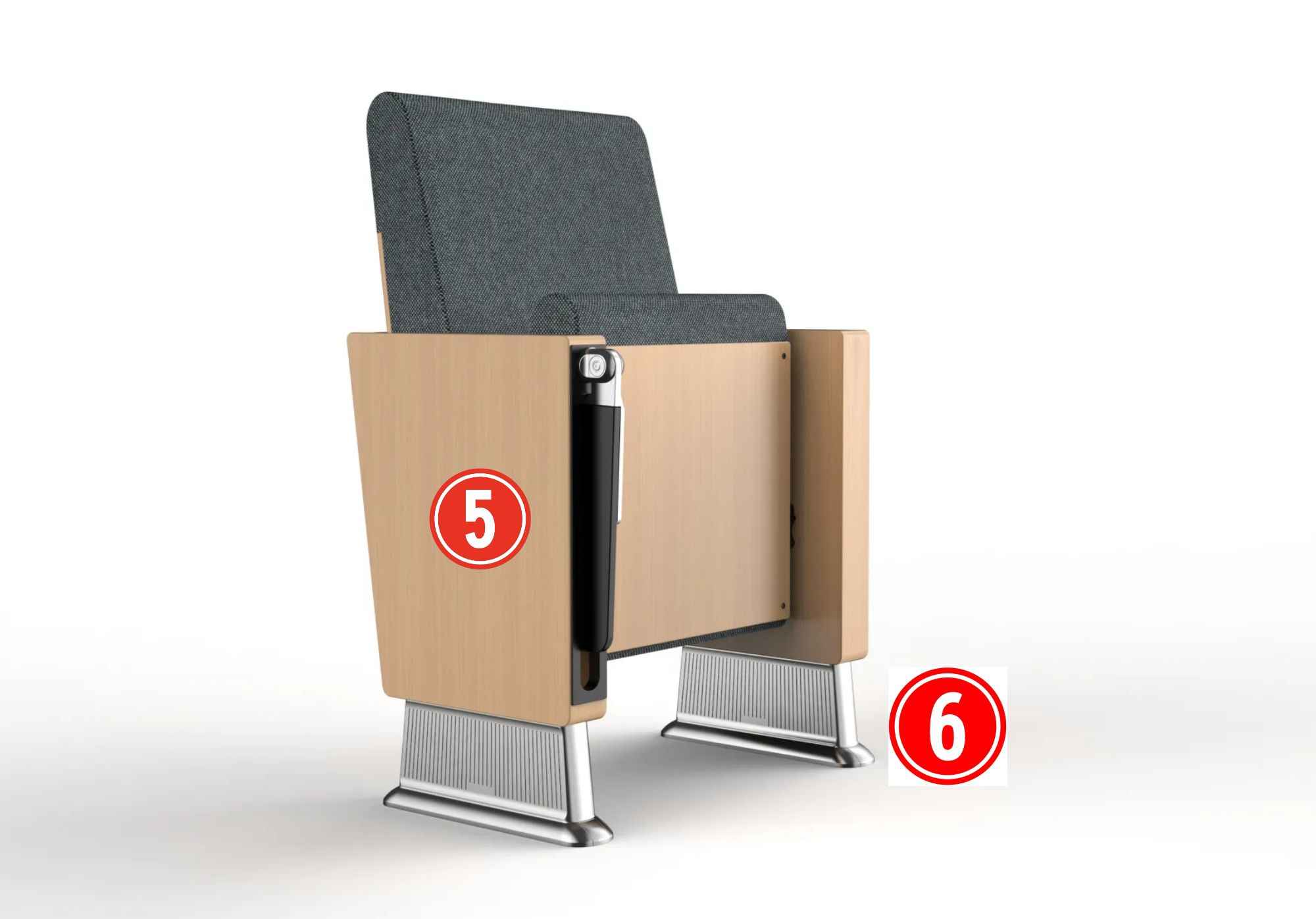 ② & ③ Seat and backrest foam: High-density PU, formed through cold foaming and molding.