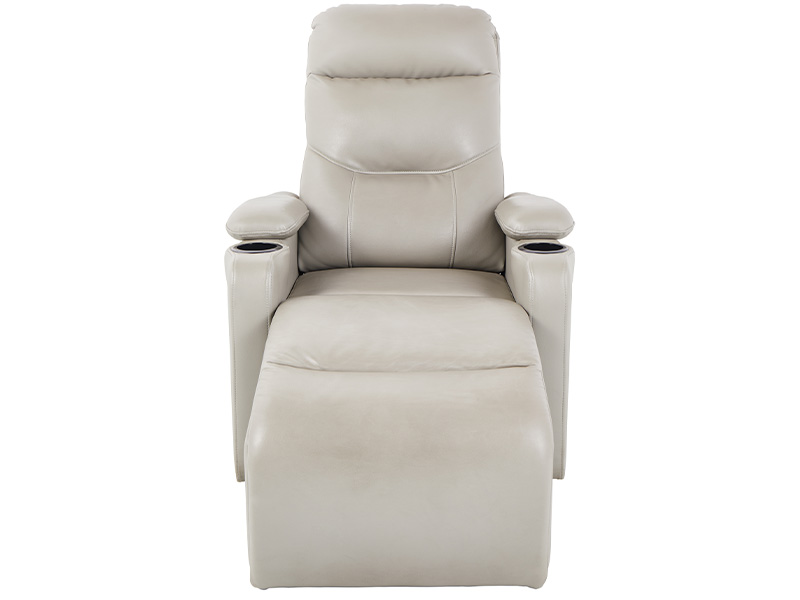 ① Handrail:Made from carefully selected eco-friendly solid wood through a shaping process. The cup holder can be equipped with a slot for a mobile phone and a middle tube for popcorn. The cup holder is injection molded from new ABS material and can be installed with a luminous number plate.