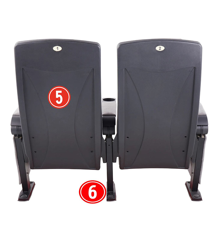 ⑥ Leg: The armrest feet are made of steel plates no less than 2.5mm thick through oil pressure and welding. The armrest feet base plate is formed by stretching steel plates no less than 2.5mm thick; it fixes the seat to the floor.