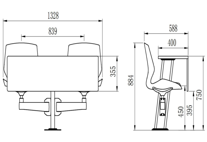 ③Writing table : Medium-density fiberboard (MDF) with fireproof surface
